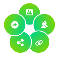分析展⽰、获客、连接、共享、分享这五个维度的具体应⽤场景和实现⽅式